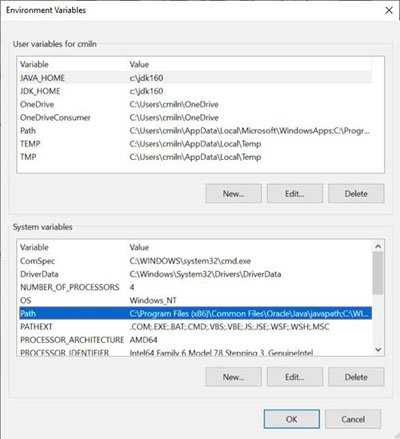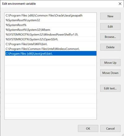 5. Click New, and type in the name of the Java Runtime environment folder. (Example: C:\Program Files (x86)\Java\jre6\bin\)