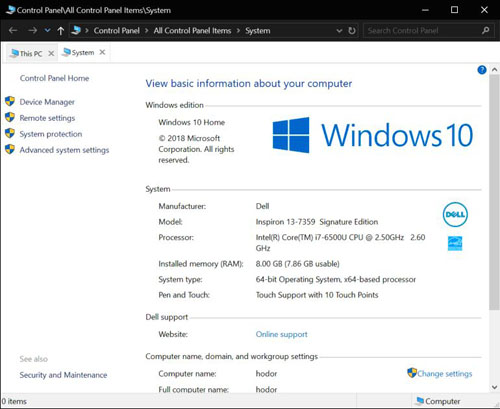 1. Open Windows File Export and locate This PC – right click on This PC, and choose properties. You should see this window: